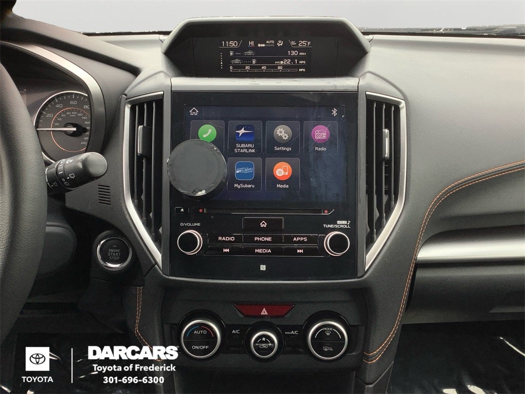 - Radio: Subaru STARLINK 8.0" Multimedia Plus System -inc: AM/FM stereo, HD Radio, single disc CD player w/MP3/WMA/CRR/RW file capability, multi touch gesture high resolution display screen, voice activated controls, Bluetooth® audio streaming and hands-free phone connectivity, Bluetooth® hands-free SMS text messaging connectivity, Near Field Communication (NFC), iPod control capability, SiriusXM All Access Radio (4 months free trial/subscription required after), SiriusXM Travel Link (4 months free trial/subscription required after), 6 speakers (2 dash panel tweeter, 2 front door and 2 rear door), 3.5mm auxiliary input jack, dual USB input ports and roof mounted audio, satellite and connected services antenna